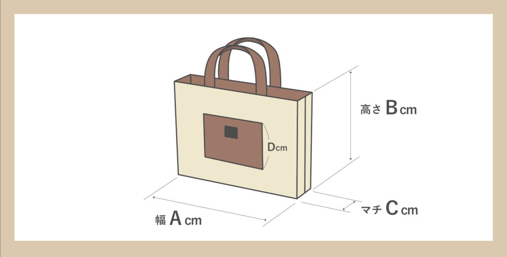 - ポケットの高さ:D cm (ポケットを付ける場合)
