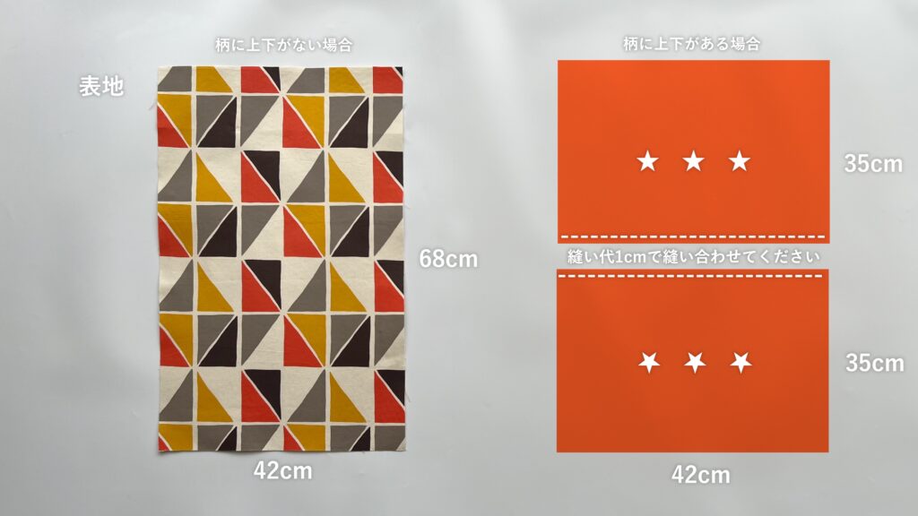 - 柄に上下の方向がない場合:横 42cm × 縦 68cm …1枚