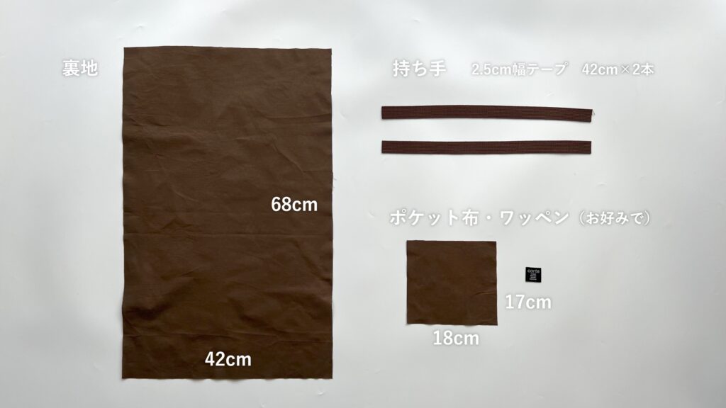 - ポケット布: (お好みで) 横 18cm × 縦 17cm …1枚