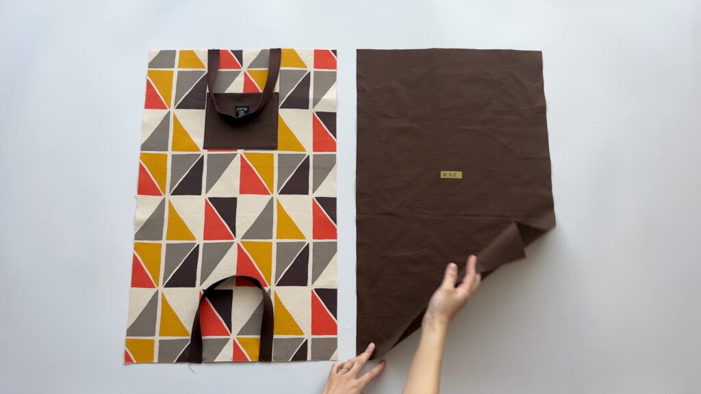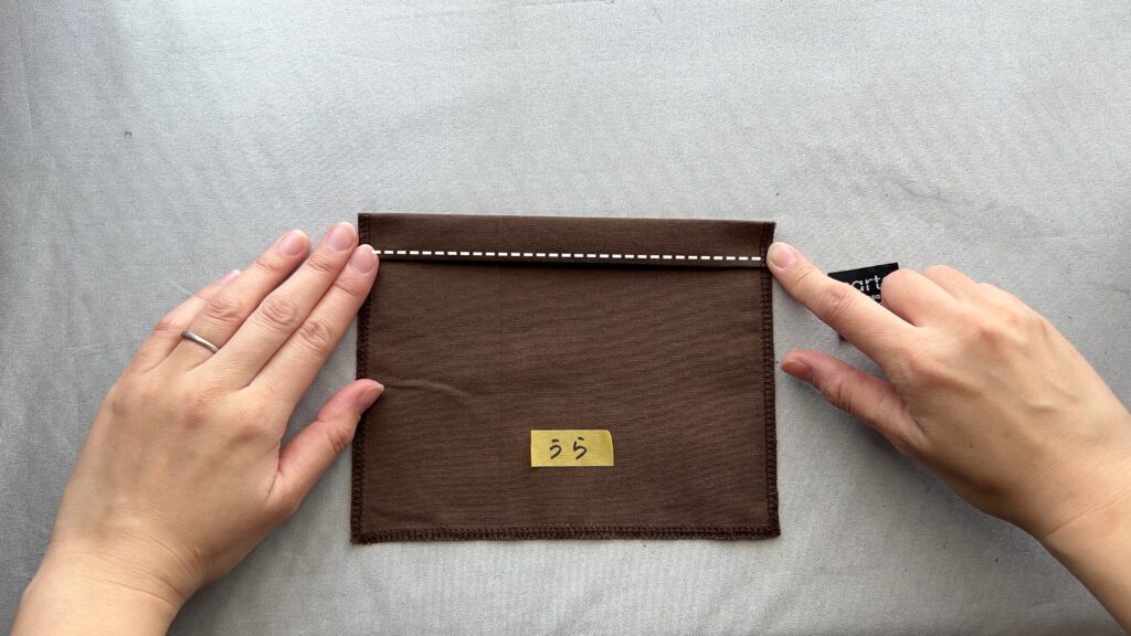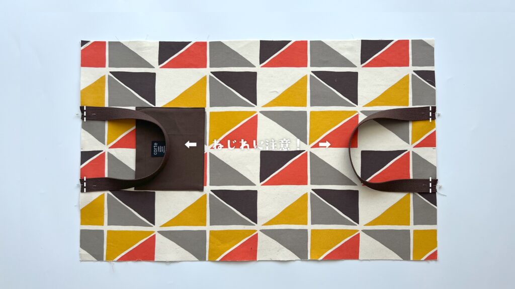 - 持ち手が両方とも裏地側に来るように整えます。