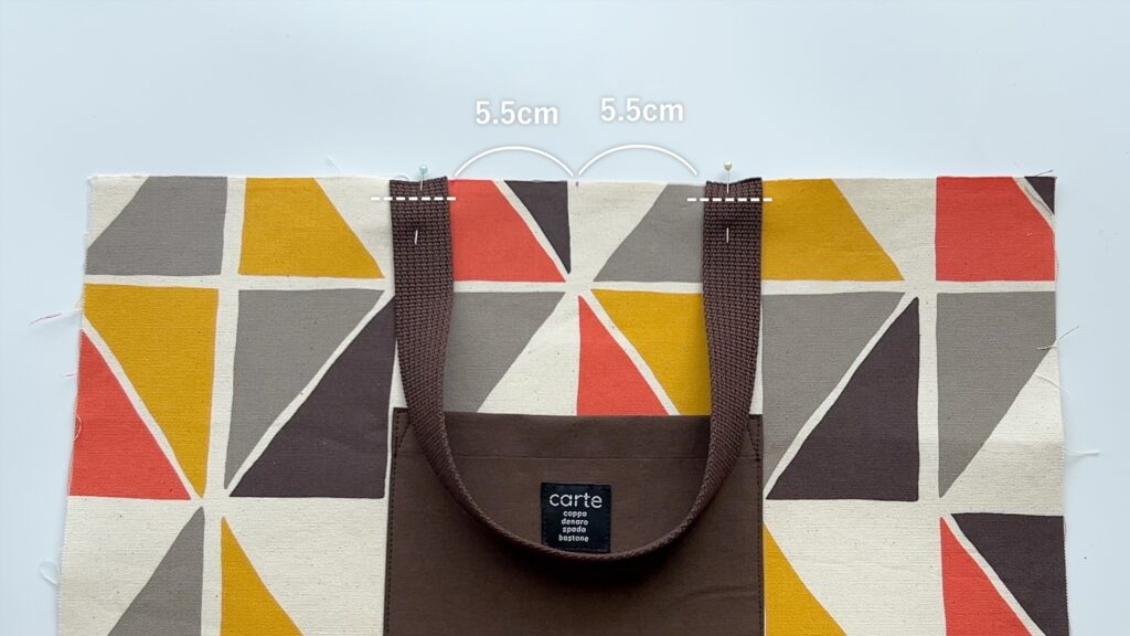 - この左右5.5cmの位置の印に、持ち手の内側が来るよう合わせます。